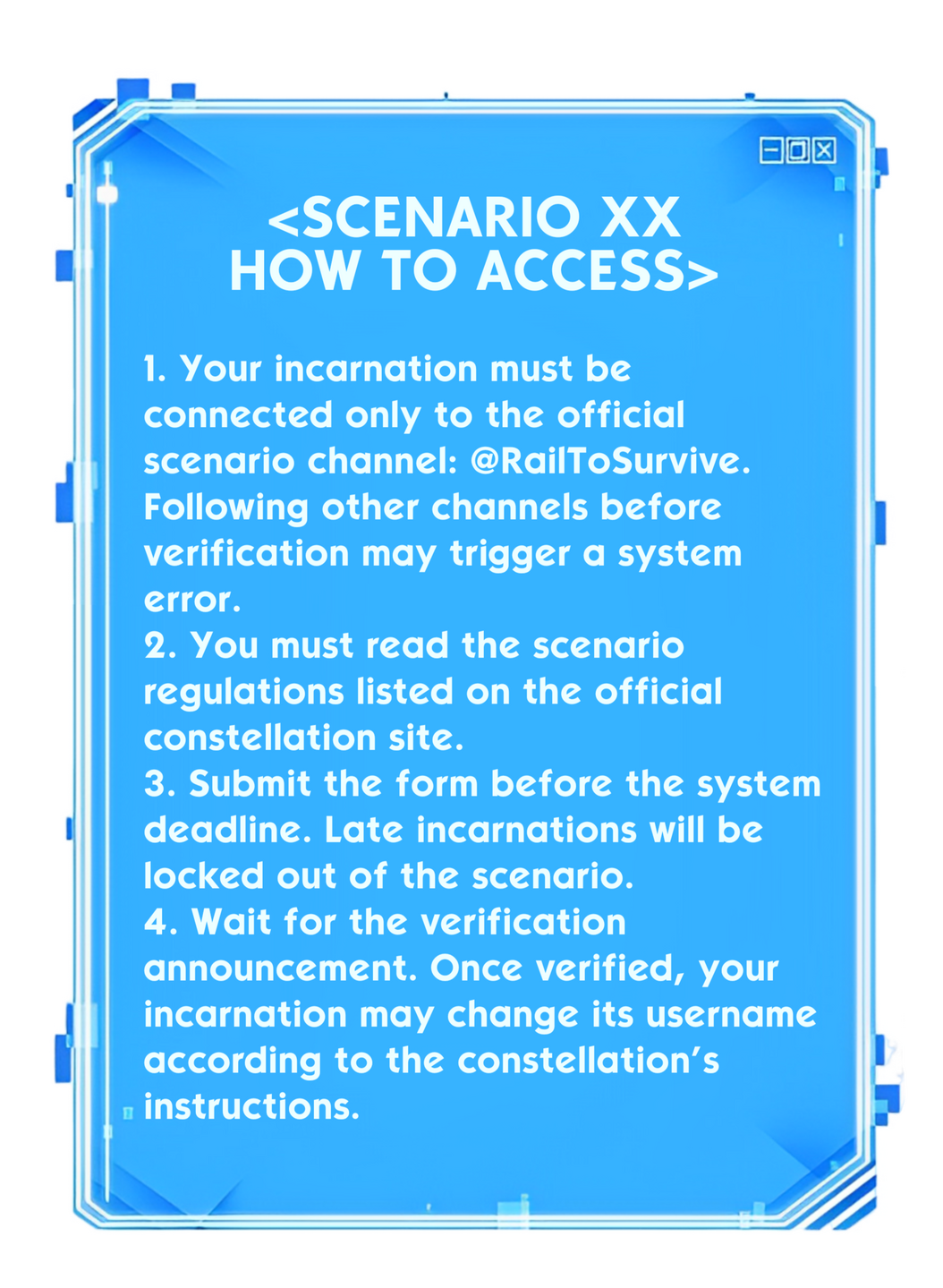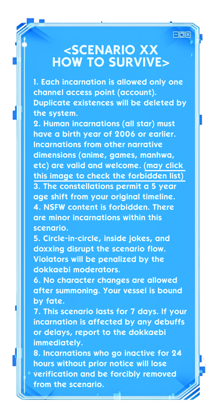 The train was crowded, humming along the tracks as Jakarta blurred outside in the color of burnt orange and steel. People stood shoulder to shoulder. Some scrolled through their phones. Some slept. Nothing felt out of placeโuntil the lights flickered.Then everything stopped.Not the train. Not exactly. But the world around you seemed to freeze. Conversations faded mid-sentence. Music cut off. The screen above the door went black. You barely had time to react before something appearedโsilent, floating in midair.You have entered scenario.[๐ ๐ฎ๐ถ๐ป ๐ฆ๐ฐ๐ฒ๐ป๐ฎ๐ฟ๐ถ๐ผ #๐ฌ๐ญ โ ๐ง๐ต๐ฒ ๐ง๐ฟ๐ฎ๐ถ๐ป ๐ง๐ต๐ฎ๐ ๐ก๐ฒ๐๐ฒ๐ฟ ๐๐ฟ๐ฟ๐ถ๐๐ฒ๐ฑ]